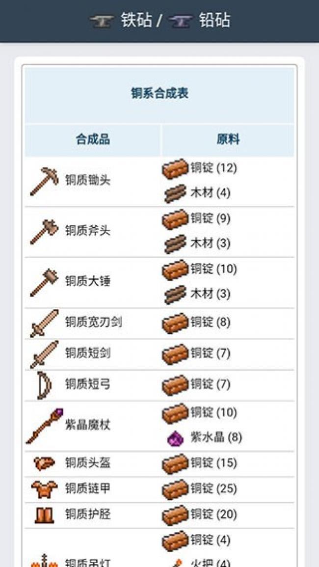 3、泰拉瑞亚合成表APP下载武器制作,在这里选择特定的原材料来制作特定的防御武器。