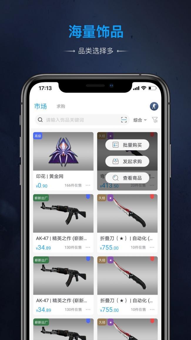 2、饰品在用户账户上,边玩边买,使用IGXE卖家助手APP,随时随地查看。