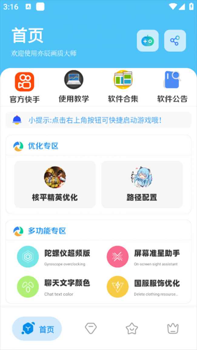 亦辰画质大师官方最新版本下载是一款功能全面的画质辅助工具,它可以帮助玩家自定义游戏画质的亮度、对比度和饱和度等参数,玩家还可以根据自己的需求和喜好进行优化,同时还可以支持用户调整游戏中的动态效果、光照效果等参数,让游戏画面更加真实、流畅,界面设计简洁干净不占用内存,非常适合喜欢fps游戏的用户,还有多种游戏模式可以自由选择,给你带来不一样的画面效果,用户可以根据自己的硬件配置选择不同的画面参数,让你享受高清画质的同时还可以保证游戏的流程运行,为用户带来更优质的画面体验,如果你也喜欢这款软件,软件站现有最新版本,那就快来下载吧。