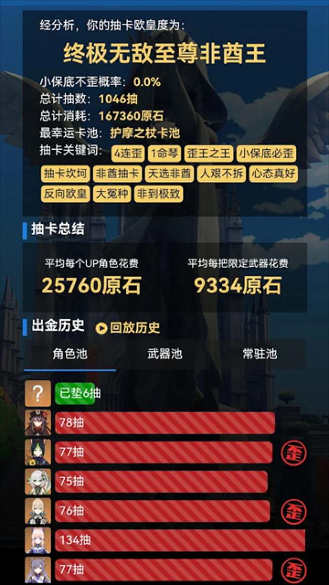 3、提瓦特小助手抽卡分析安卓端根据玩家原神账号角色的圣遗物、装备、等级数据分析角色的练度情况。