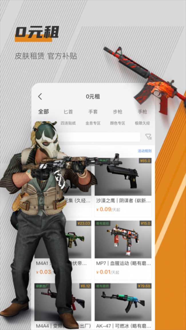 2、皮肤试玩零元租,支付宝信用免押,无门槛玩饰品,支持多 Steam 账号绑定,多种业务模式支持,每日冷却交易提示。