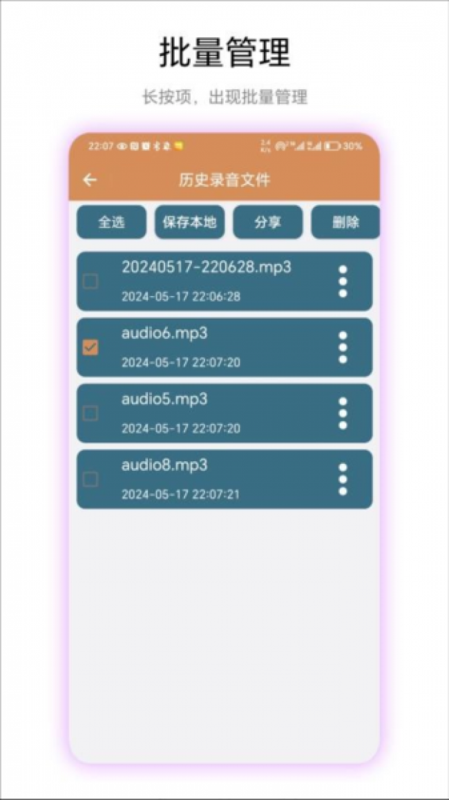 2、提供录音文件列表,支持按时间、名称等排序,方便查找和管理。