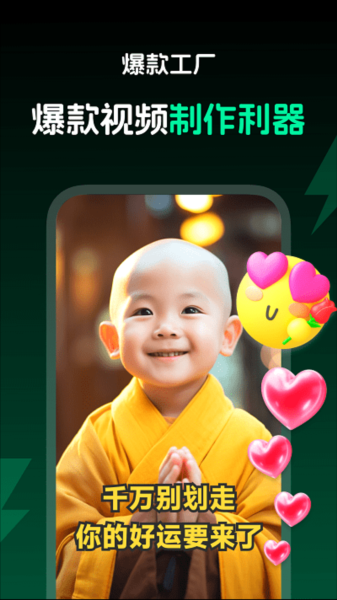爆款工厂app下载是一款超级高效的视频剪辑软件,通过最先进的智能AI技术能够支持多种不同的剪辑场景,让视频制作变得更加轻松快捷,其中为你提供了多种不同的风格效果和滤镜,用户可以根据自己的喜好添加不同的滤镜和特效,让你的视频看起来更加的精致,并且其中还可以为你推荐丰富的素材,让你可以根据模版素材快速制作出热门视频作品,还可以为你提供更多的灵感,而且还有各种热点文案提供给你进行查看和使用, 那你的文案变得更加的高端大气,同时还可以帮助用户将各种大型视频文件进行压缩,这款就可以节省大量的空间更加方便进行使用。喜欢的伙伴们快来下载试试吧。