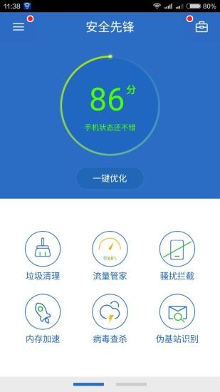 3、安全先锋app官方下载中迅速扫描仪恶意程序、扣钱短消息、系统垃圾、关心手机健康。