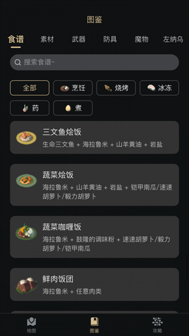 2、为玩家提供地图、图鉴、攻略等多方面的内容,方便一键查看游戏的详细信息。