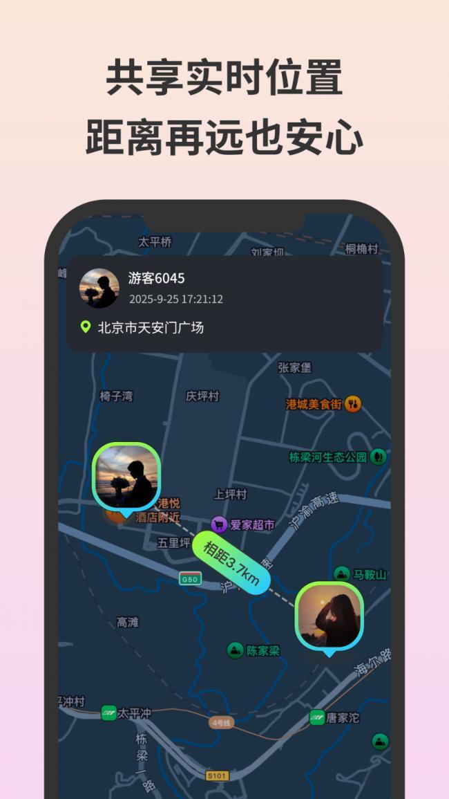 3、广泛的适用人群,无论是情侣、家庭还是密友,均可实现位置共享守护。