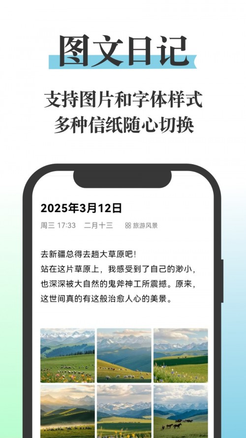 2、可通过文字和图片的方式组合记录,帮助你能更加清晰且全面的记录生活。
