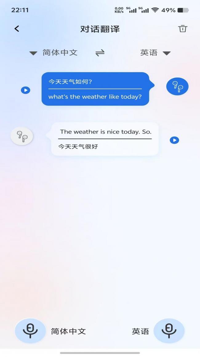 星闪传声app官方下载是一款超级好用的手机翻译软件,能够为用户提供更加优质的语言翻译功能,其中将智能AI与翻译功能完美结合,可以随时享受到方便快捷的语言翻译服务,并且还可以为你提供多种翻译功能,可以满足用户在不同场景下的使用需求,选择符合场景的翻译功能,可以更加高效的进行翻译,还可以支持同声翻译,面对面就可以与他人进行高效的交流沟通,让你在无论是在工作当中还是生活旅游当中都可以提供强大的帮助,还可以帮助你有效的翻译各种语音消息,及时了解语音当中所要表达的意思,让你可以更好的和对方进行语音聊天。喜欢的伙伴们快来下载试试吧。