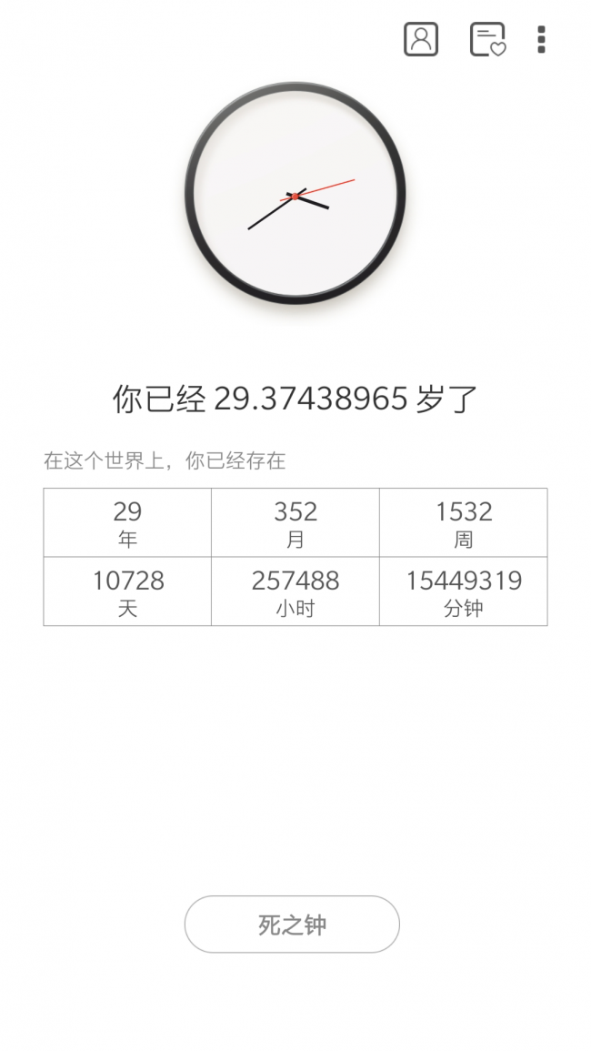 3、生辰时钟app下载这样你就会知道自己还有多久可以活,软件可以自由选择在什么时候死亡,感受光阴。