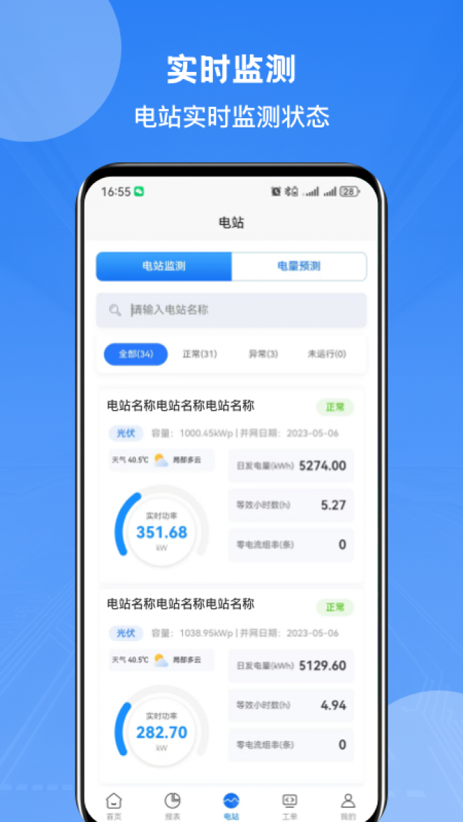 2、直观展示电站运行状态、发电量、收益等数据,快速掌握电站整体情况。