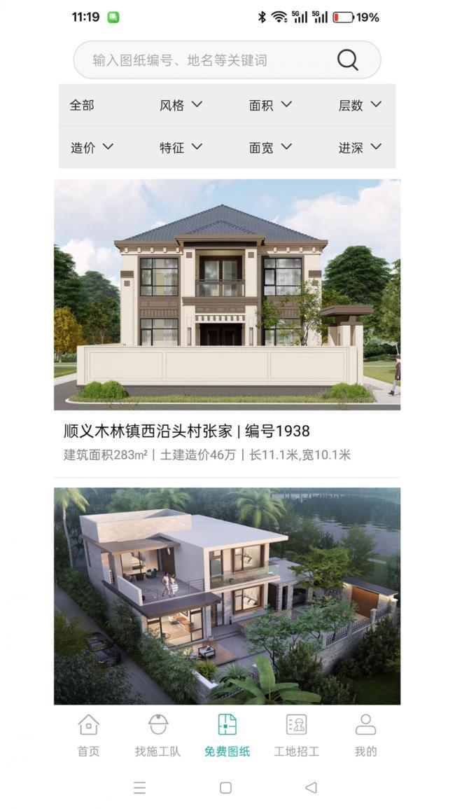 乡住app下载是一款非常实用的自建房设计软件,其中能够为用户提供多样建房服务以及建材服务等多种功能,其中包含了丰富优质的建房图纸,用户可以直接在手机上进行查看,让你可以在众多图纸当中找到符合自己需要的图纸,也可以通过不同的图纸为你带来灵感自主设计建房图纸,并且还可以为你提供筛选功能,可以通过不同的选项更加精准的找寻到你需要的图纸,还可以为你提供同城建材服务,可以帮助用户解决建房需求的建材问题,所有的价格都是公开透明的,不用担心会上当受骗,非常的实用和方便,其中还有许多优质的功能,可以为你带来便捷。喜欢的伙伴们快来下载试试吧。