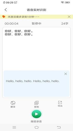 录音转文字小助手app下载是一款十分便捷且实用的语音识别软件,能够为你提供强大的语音转文字功能,操作也是非常的简单,你只需要按住录音就可以精准识别出文字内容,让你不需要打字就可以输入文字信息,非常的方便,并且在识别过后还可以将其中的内容进行翻译,让你可以更好的了解其中所说的内容,还可以将其中的内容进行复制粘贴,方便用户随时进行使用,无论是会议记录、学习笔记还是语音备忘等多种场景下都可以进行使用,帮助用户可以记录下任何重要的事项,轻松自如的实现语音和文字的转换,满足用户不同场景的使用需求。喜欢的伙伴们快来下载试试吧。