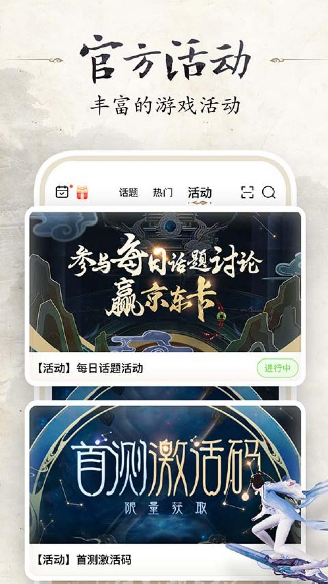 1、官方活动,丰富的游戏活动可以随时参与让用户了解更多信息。