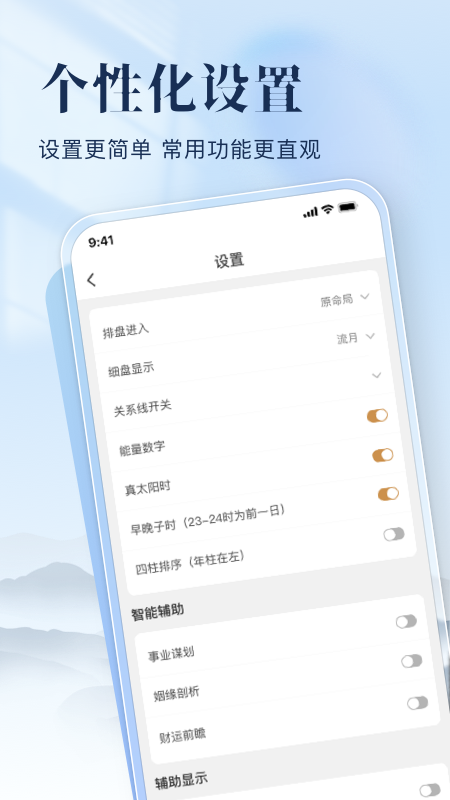 1、在线即可自由进行功能设置,便于满足自己的排盘需求,掌握更详细的运势。