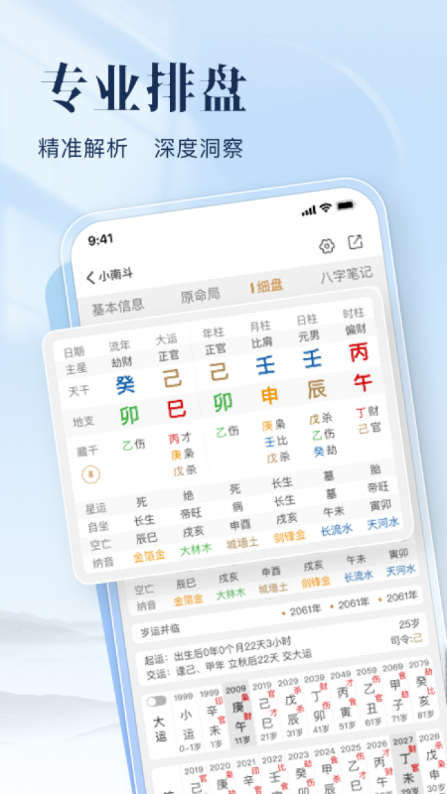 1、非常专业的排盘工具,精准分析用户的命理信息,在应用中可以详情了解。