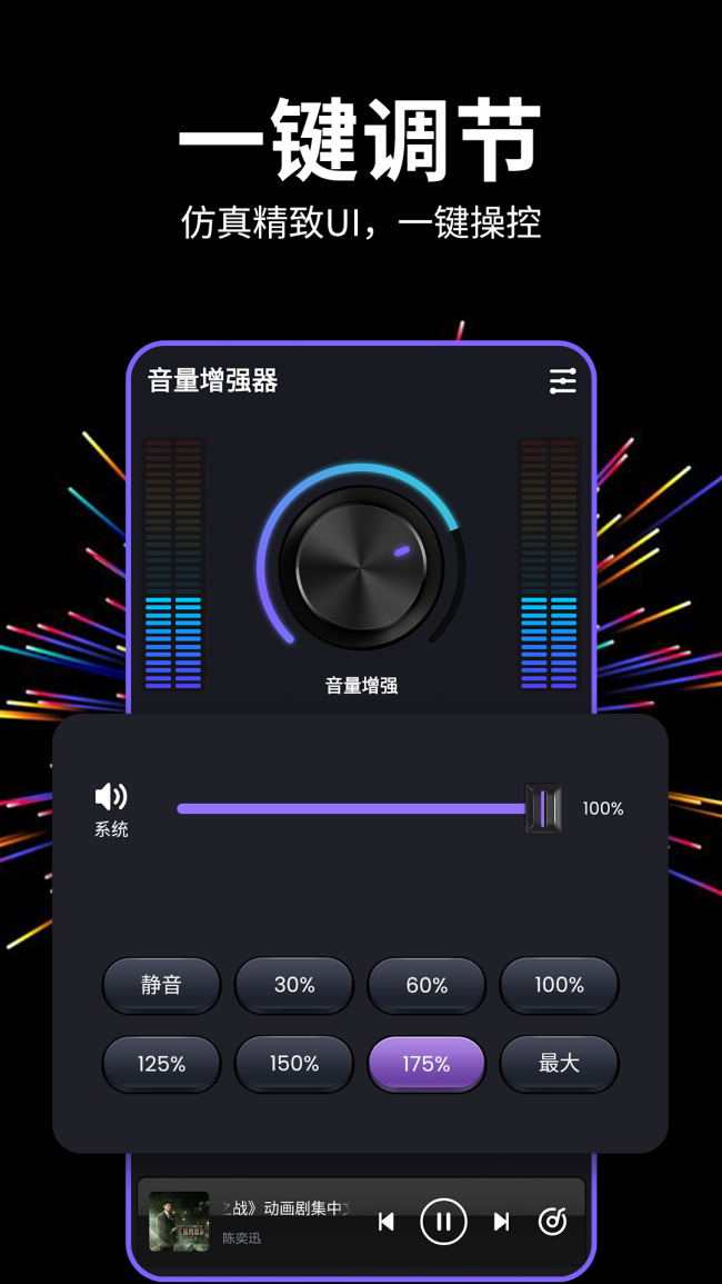 多多音量增强器app下载是一款非常好运虎的手机音量调节软件,能够为用户提供更高音质的体验感,其中采用了智能化的算法,在放大音量的同时避免声音失真,确保了声音清晰度和强精度,通过它可以帮助用户打破手机系统的音量限制,让你的声音可以变得更加的大声,并且其中还可以为用户提供多种设置选项,用户可以随时调整到不同模式进行试用感受效果,可以根据自身需求来对其进行设置,在设置好之后就可以直接打开音乐播放器来放歌,感受到声音带来的细节变化,还可以为你提供耳机设置,让耳机的声音听起来更加的立体,为你带来听觉盛宴。喜欢的伙伴们快来下载试试吧。