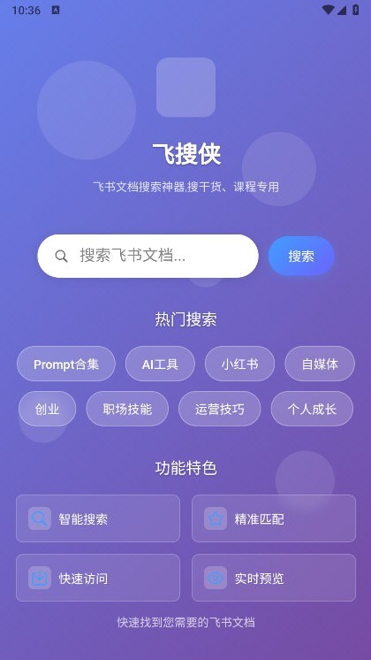1、飞搜侠app官方下载区别于通用搜索引擎,专注飞书文档生态,精准抓取公开知识资源,是职场人获取飞书干货的专用工具。