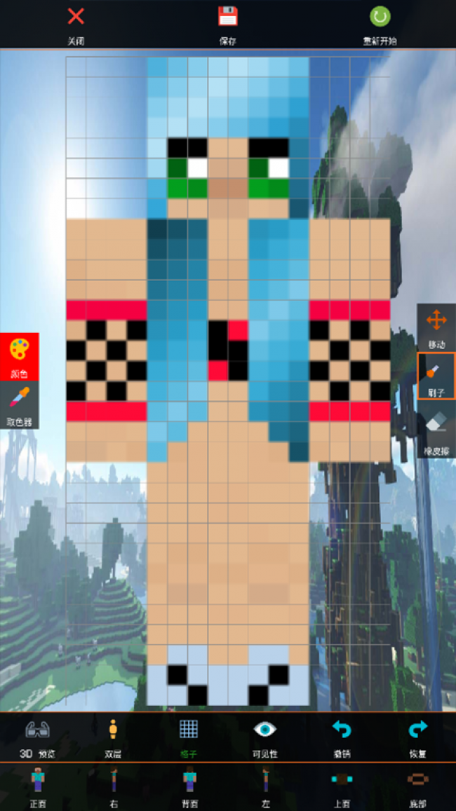 1、自定义的对皮肤进行编辑,然后使用刷子,橡皮擦,色盘等等进行修改。