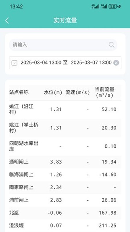 3、水文数据可以查看水文站读取的数据,包括降雨量、流量、累计流量等水文数据。