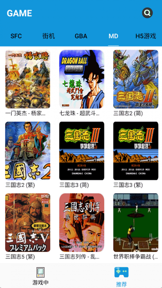 1、集成FC、SFC、街机、GBA、MD等多平台超5000款经典游戏,涵盖《超级马里奥》《拳皇》《塞尔达传说》等热门IP,支持一键检索与分类浏览,满足玩家对不同类型复古游戏的需求。