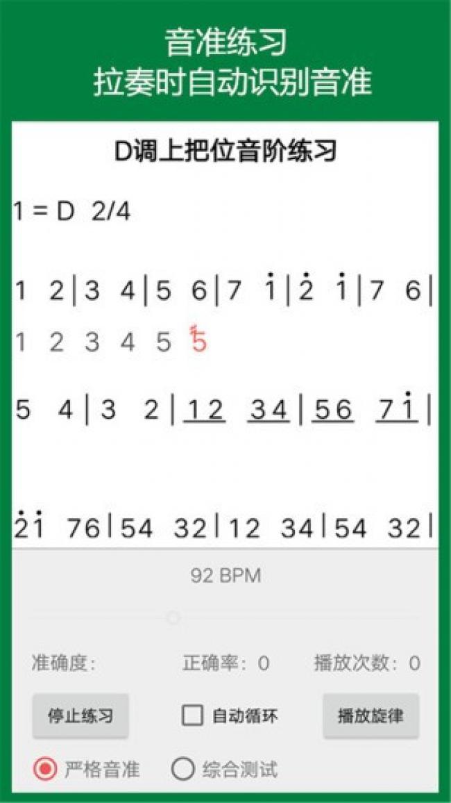 2、提供音准练习,节奏练习以及循环练习这三种模式可切换。