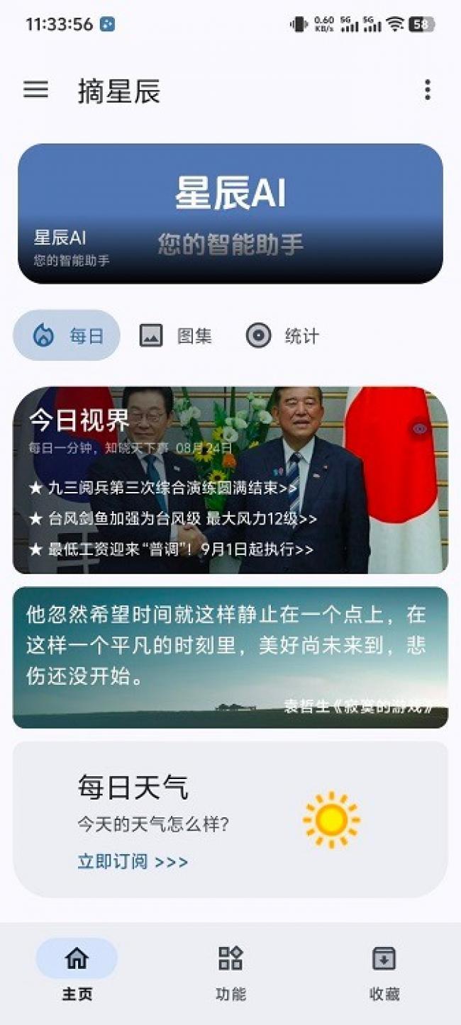 摘星辰工具箱app下载是一款非常实用的手机多功能工具箱软件,界面清爽干净,其中为你提供丰富多样的手机工具,无论是日常生活、学习办公还是休闲娱乐等都可以满足你的需求,让你随时在这里找到自己需要的工具进行使用,并且所有的工具都进行了详细的分类整理,用户可以根据不同的类型选择自己需要的功能,非常的方便,而且还将各种热门常用的工具全部都排列在首页显示,让用户可以更快速的了解到各种工具的作用,为你带来前所未有的便捷,不管是新闻资讯、天气情况还是正能量短句都可以在这里进行查看,让你一款应用当多个进行使用。喜欢的伙伴们快来下载试试吧。