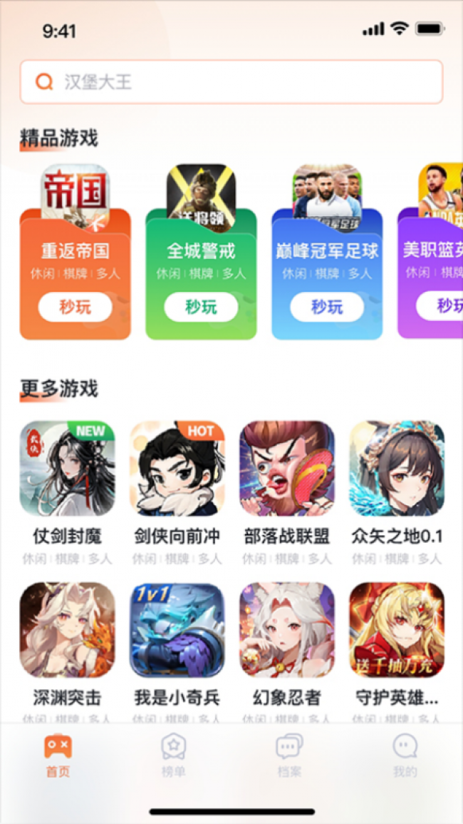 2、可通过搜索的方式快速查找想玩的游戏,输入对应关键词即可轻松找到,便于体验。