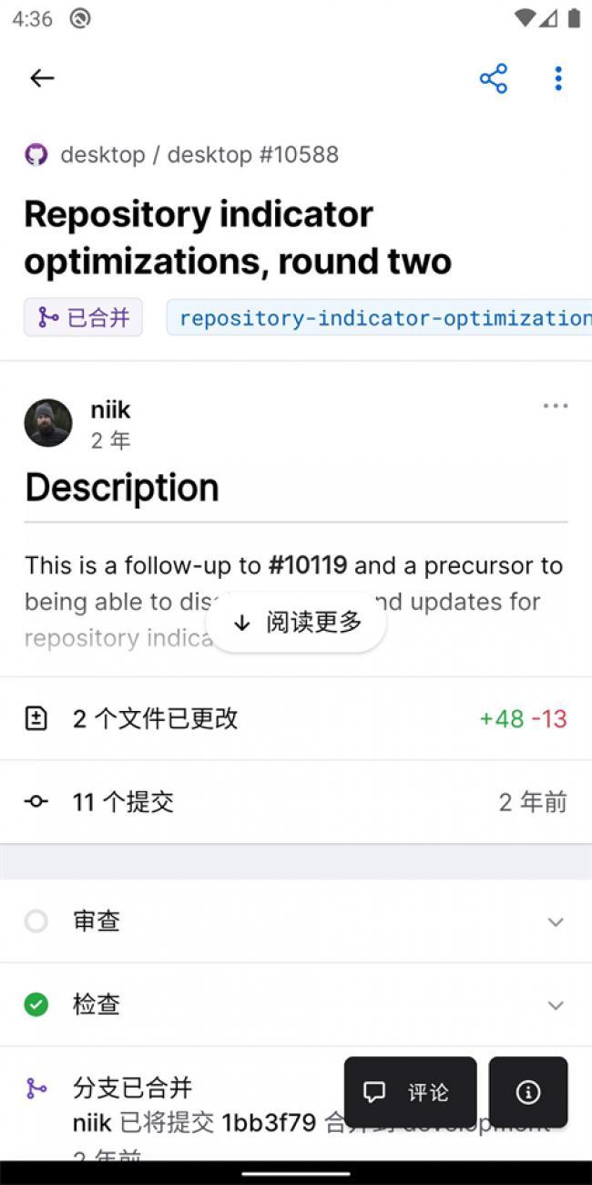 3、无论开发者是要 Review,或是检查 bug,亦或是进行合并 Pull requests 等常用操作,移动端版本 Github 的功能都将包含在内。