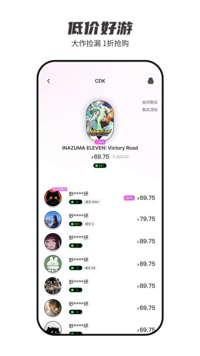 3、依托C2C模式,价格不受官方限制,优化了Steam极其繁琐的转赠与激活流程。