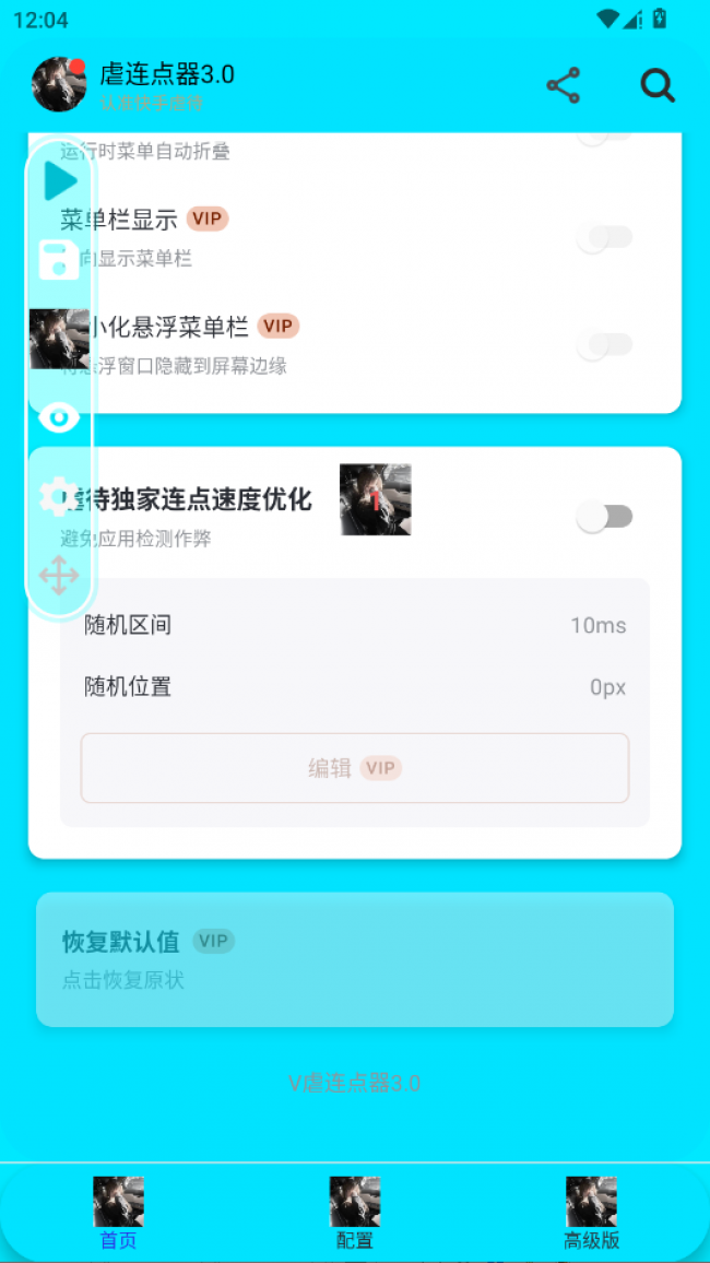 1、虐连点器3.0app支持高级点击与手势自定义,可精准调节点击位置、间隔、时长与循环次数,同时兼容多点同步点击,操作更灵活高效。