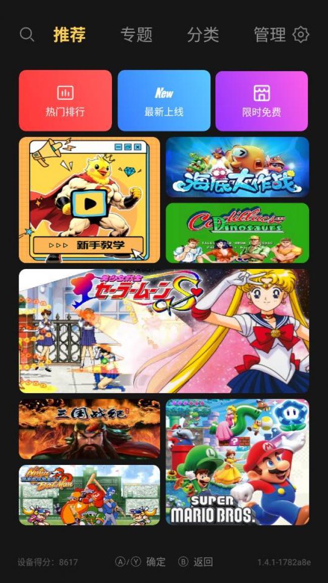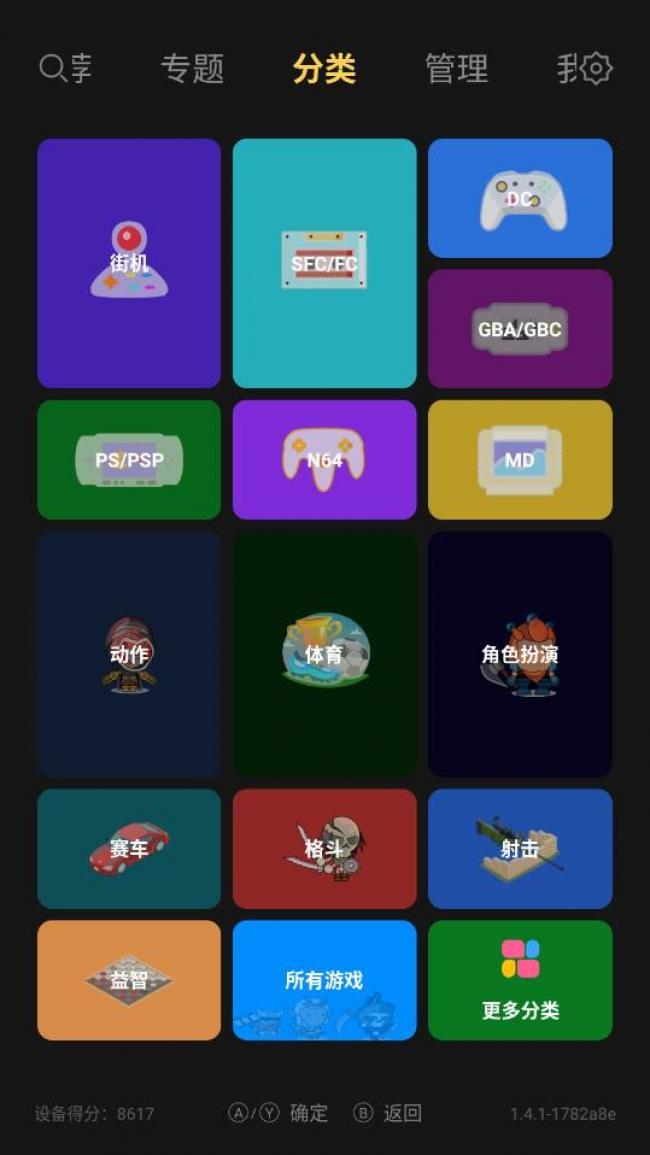 2、下载安装一键完成,游戏和主机分类一目了然,街机、掌机、家用机等十几款经典游戏主机。