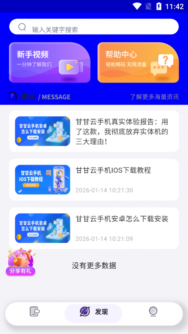 甘甘云手机app安卓版下载是一款功能强大的计算资源,低端配置的物理机也能流畅运行高负载应用,彻底告别发烫、卡顿和电量教育,对硬件配置没有太高要求,能够轻松运行各种大型游戏,能够满足用户的各种需求,非常适合硬件配置不足的用户,让你可以享受到更流畅稳定的游戏画面和操作体验,只需要保持网络稳定,功能全面操作简单方便,深受用户喜爱,没有任何广告弹窗使用环境舒适,非常适合喜欢玩游戏的用户,丰富的游戏资源,不需要下载安装,点击就可以立即运行,详细的分类能帮你轻松找到自己感兴趣的游戏,感兴趣的用户可以立即在软件站下载!