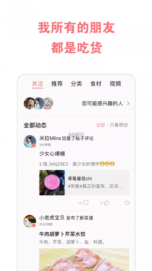 3、新增活动频道,定期发布参与主题活动,并有更多人随拍随送,传递菜谱,优质作品还可获奖,美食生活将变得更加有趣。
