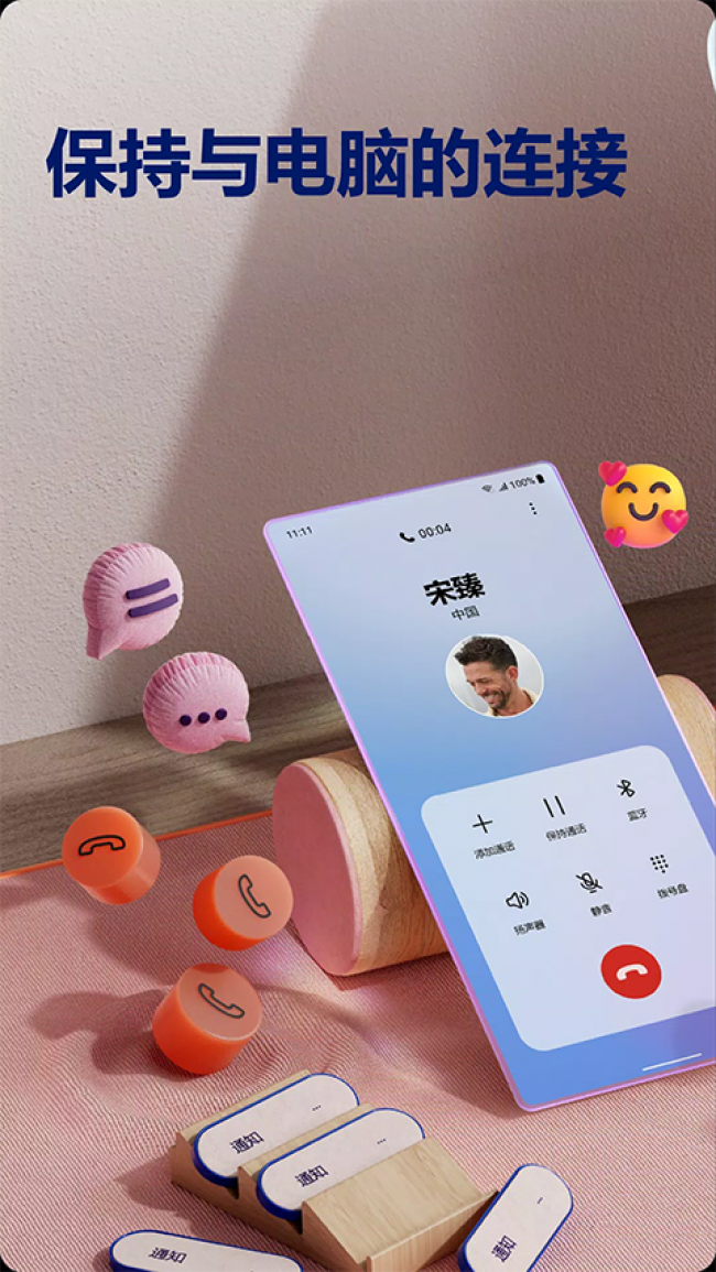2、链接你的Android 手机和电脑以查看和回复短信、拨打和接听电话以及执行更多操作 - 所有操作都可在电脑上完成。