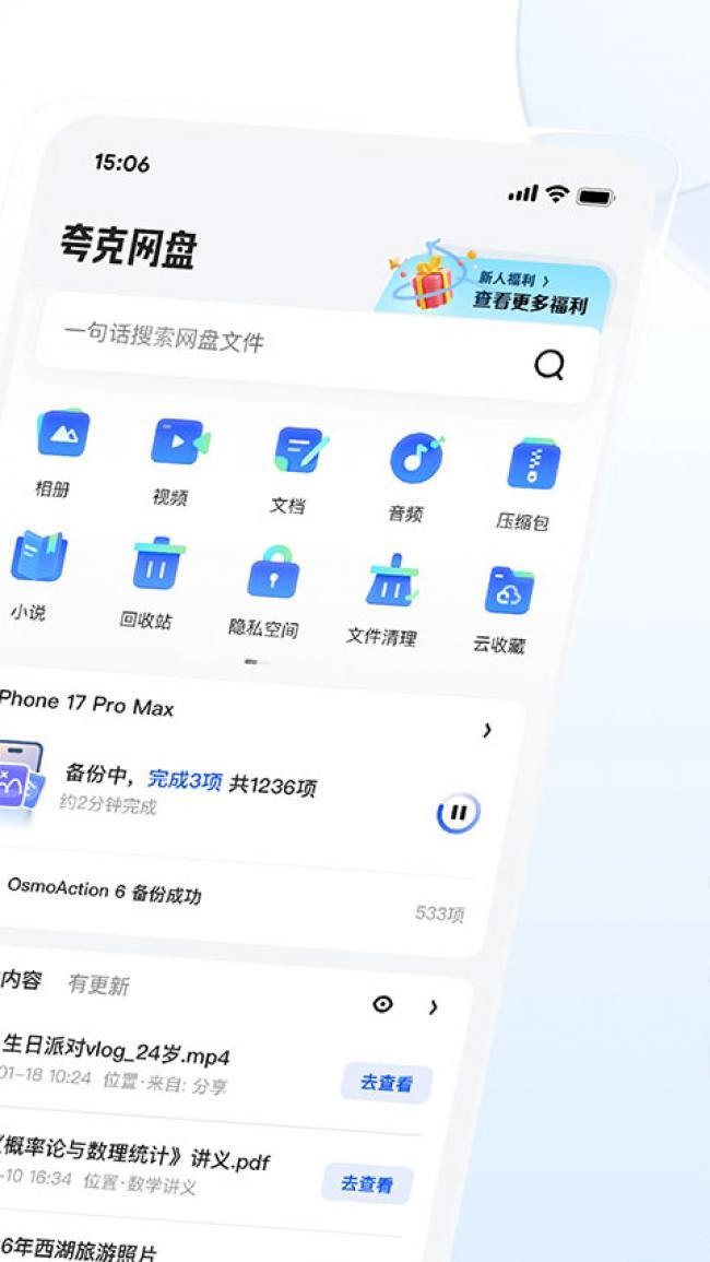 1、夸克网盘app下载网盘上传下载不限速,普通用户也能享受流畅传输服务。