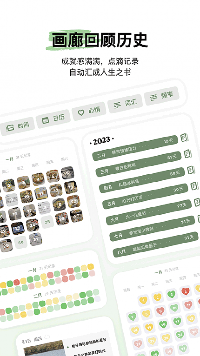 3、记录的生活日记可智能生成时间轴,帮助你能更加清晰明了的回顾自己的精彩生活。