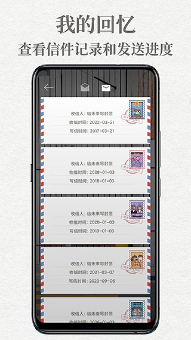 给未来写封信app下载是一款能够给自己未来写信的软件,采用了极简风格的设计理念,无论是图标还是内容界面都创意十足,让你可以轻松就找到所有的功能,通过它可以将各种想要说的话记录在其中,书写完成之后是不能够被撤回的,你可以设置一个时间点,在未来的某一个时间段这封信为发送到你的手机当中,让你可以收获到意外的惊喜,回忆起自己当初想要对你说的话,而且其中还可以为你提供多种输入方式,让你可以更好便捷的书写各种话语,还可以添加不同的图片,让你轻松回忆起当初的画面,在回过头来观看自己走过来的路程是否充满艰辛。喜欢的伙伴们快来下载试试吧。